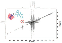 | Fig. 1. 2D NOESY spectrum of Fc-FF⊂β-CD complex (D2O, 400 MHz, 25 ℃, [Fc-FF] = [β-CD] = 1.0 mmol/L). The red circle indicates the NOE cross-peaks between ferrocenyl moiety and β-CD's cavity. | |