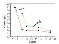 The PDA electropolymerization cycle was studied at 5, 8, 10, 15, 20 cycles. From Fig. 2, it can be found that the peak current of DPV was decreased with the increase in the number of electro polymerization cycle. The thickness of the PDA will affect the sensitivity and accuracy of the sensor, the PDA film is too thin to completelycover the electrode surface, and too thick to completely elute template molecules, which will affect the detection sensitivity. Thus, the optimal number of polymerization is 8 cycles because the current rapidly drops and is the largest after eluting template molecule. It is indicated that the formed MIP is uniform and the electrochemical response is the strongest under above conditions.