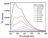 | Fig. 4. PL quenching spectra of P3HT: 3D-imide in CHCl3 with increasing concentration of 3D-imide (λEx = 540 nm) | |