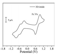 | Fig. 5. Cyclic voltammetric profile of 3D-imide in dichloromethane with 0.1 mol/L Bu4NPF6 as supporting electrolyte | |