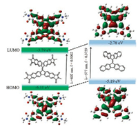 To gain more insights into the electronic properties of 3D-imide compared with its carbon analogue BF-3, density functional theory (DFT) calculations were performed on the basis of B3LYP/6-311G (d, p). The optimized geometries of 3D-imide model and BF-3 reveal similar dihedral angles (~35°) between their planar backbones. Also, as shown in Fig. 6, the introduction of imide moieties presents almost no influence on the electron delocalization over the whole conjugated systems. Moreover, the frontier energy levels of 3D-imide are deeper than those of BF-3, which is well in agree with the experimental results. This can further emphasize the function of the imide units. According to timedependent DFT (TD-DFT) calculations, the lowest-energy absorption of 3D-imide and BF-3, can be assigned to the HOMO → LUMO transitions, which is corresponding to the absorption bands at ~602 nm and ~577 nm, respectively.