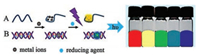 | Fig. 2. Schematic illustration of principles of DNA-mediated metal nanomaterials for environmental analysis: (A) colorimetric method (B) fluorescence method. | |