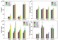 | Fig. 4. The release of IL-6 (A), sICAM-1 (B), sVCAM-1 (C), and the adhesion of THP-1 monocytes onto HUVECs (D). HUVECs were pre-incubated with or without 500 nmol/L TG for 1 h, and then exposed to various concentrations of XFM23 (h-MWCNTs) and XFM24 (c-MWCNTs) for 24 h. The concentrations of cytokines released into supernatants were determined by ELISA. THP-1 adhesion was measured by using a fluorescent probe CellTracker Green. Data represent mean ± SEM of three independent experiments (n = 3 for each). * P < 0.05, compared with control, ANOVA (For interpretation of the references to colour in this figure legend, the reader is referred to the web version of this article). | |