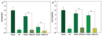 | Fig. 7. The expression of KLF2 (A) and KLF4 (B). HUVECs were pre-incubated with or without 500 nmol/L TG for 1 h, and then incubated without (control) or with 64 μg/mL XFM23 (h-MWCNTs) and XFM24 (c-MWCNTs) for 24 h. The expression of KLF2 and KLF4 was determined by real time RT-PCR. Data represent mean ± SEM of three independent experiments (n = 3 for each). *P < 0.05, compared with control; #P < 0.01, compared between cells with or without TG pre-treatment, ANOVA. | |