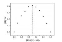 | Fig. 3. Job's plot obtained by plotting the chemical shift change (△δ) of the 1a in 1H NMR spectra by varying the ratio of the host and urethane against the mole fraction of Host 1a. The total concentration of the host and the guest is fixed: [Host] + [Guest] = 1.0 mmol/L. This experiment supports the 1:1 binding stoichiometry between urethane and 1a. | |