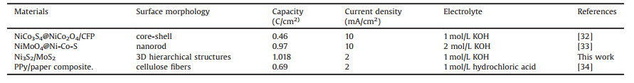 Table 1 A comparison of MoS2/Ni3S2 with previous reported electrode materials. |