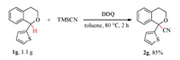DDQ (2, 3-dichloro-5, 6-dicyano-1, 4-benzoquinone) has been widely adopted as an efficient oxidant in the C—H functionalization of a series of primary benzylic ethers. In this context, Shi and Wang disclosed a DDQ-mediated oxidative C—H cyanation of isochroman substrates leading to corresponding secondary ethers [10b]. Accordingly, α-phenyl substituted isochroman 1a was facilely prepared (the details are given in Supporting information) [11], and then subjected to the C—H functionalization with trimethylsilyl cyanide (TMSCN) using DDQ as the oxidant for optimization (Scheme 1). A systematic investigation of the cyanation source, solvent, and temperature identified that DDQmediated C—H cyanation of 1a with TMSCN proceeded smoothly in toluene at 80 ℃ for 1 h, providing the expected tertiary ether 2a in 92% yield. No expected 2a was observed when KCN was used as the cyanation agent.