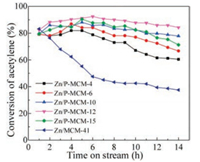 | Fig. 5. Acetylene conversionduring the hydration of acetylene catalyzed by Zn/P-MCM-x catalysts. | |