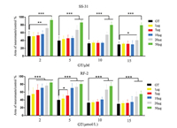 | Fig. 3. The protective effectsof peptide SS-31 and RF-2 on hair cell damage induced by chronic exposure of gentamicin, with mitochondrial hair cells membrane potential dye TMRE. (Data were analyzed by one way ANOVA using SPSS, *P < 0.05, **P < 0.01, ***P < 0.001). | |