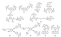 In 2013, Ma et al. [97] designed and synthesized two novel fluorescent probes (55 and 56, Fig. 10). The two probes comprised the V-shape oligo(o-phenylene-ethynylene) (OPE) backbone as fluorophore and two maleimide groups at the distance of about 1 nm. In addition, quaternary ammonium salts were introduced to provide water solubility. They displayed obvious fluorescence signal towards PVD (λex = 340 nm, λem = ~410 nm). Moreover, probe 56 exhibited higher selectivity towards PVD owing to better solubility.