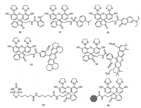 In 2011, Ying et al. [41] synthesized a SplAsH derivative (15, Fig. 4) as a biarsenical affinity ligand to purify TC tagged proteins. The maximum absorbance of probe 15 was 242 nm with ε242 = 26000 L mol-1 cm-1 and there was no inherent fluorescence whether or not it was bound to the TC motif. Probe 15 exhibited improved photostability and more than 1000-fold affinity. Furthermore, SplAsH was conjugated with Affigel-10 to get the new non-fluorescent affinity matrix 16 for affinity purification of a TC-tagged and His6-tagged GFP (Fig. 4).