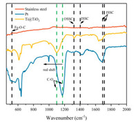 It was worth noting that an obvious red-shift of the C—O peak at 1109 cm–1 in the case of Ti@TiO2 electrode, suggesting a potential "electron-rich" phenomenon in the bond [27]. This would be attributed to the easier electron transfer through the surface C—O—Ti bond. Therefore, it could be concluded that the surface characteristics of the Ti@TiO2 electrode would be more benefit for the electrochemical reduction of FeⅢ—Ox and lead to the more efficient SMX degradation.