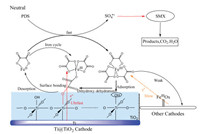 Fig. 4 illustrates the proposed reaction mechanism in the neutral Fered-FL/Ox system depending on the Ti@TiO2 cathode. At first, aqueous neutral Fenton like oxidation of PDS occurred in the presence of FeⅡ—Ox and PDS where SO4· - would be the dominant oxidant [28]. Simultaneously, the efficient electrochemical reduction of the formed FeⅢ—Ox complexes would happen through a series of solid-liquid interfacial reactions. Herein, the main FeⅢ—Ox species Fe(C2O4)33- could be hydrated and electrostatically interacted with the Ti@TiO2 cathode surface through ISSC and form specific C—O—Ti bonds, which would induce ultrafast electron transfer from the cathode to the FeⅢ [29, 30]. It would cause efficient electrochemical generation of FeⅡ-Ox which easily detached to the bulk solution due to its low affinity with the surface hydroxyl groups [30]. The appended FeⅡ species would continuously activate PDS and lead to efficient Fenton like oxidation of SMX.