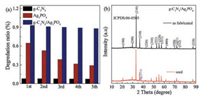 | Fig. 6. (a) Recycling tests for the photocatalytic MO degradation in the presence of g-C3N4/Ag3PO4 composite photocatalyst under visible-light irradiation. (b) XRD pattern of the as-fabricated and the used g-C3N4/Ag3PO4 composite. | |