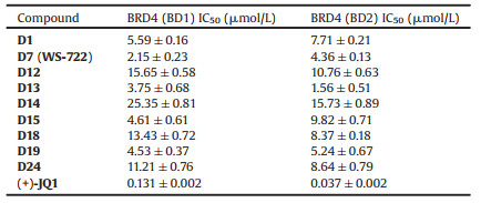 Table 1 Inhibitory activity of selected compounds against BRD4. |