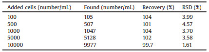 Table 1 Detection of cell concentration in human serum. |