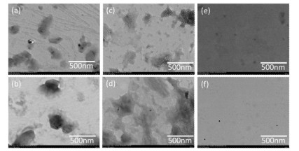 | Fig. 2. The TEM images of PT-DAE-1, 2, 3, 4 (a-d), DAE-COONa (e) and PT (f). | |