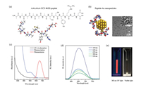 | Fig. 2. (a) Synthesis of PNIPAM COOH. (b) Schematic drawing of PNIPAM-peptide-Au nanospheres. Representative (c) TEM and (d) HRTEM image of peptide-Au clusters on PNIPAM-Au-peptide nanospheres. (e) Close-up of selected peptide-Au clusters, revealing their crystalline structure. | |