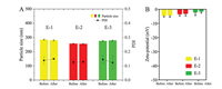 Nutritional fat emulsion injections were provided from Sino-Swed, Libang and Kelun companies and named as E-1, E-2 and E-3 group separately. Among them, the fat emulsion from Sino-Swed is regarded as original formulation and other two are generic ones. They are manufactured with the same constituents including phospholipids, glycerol and soya-bean oil. However, both phos-pholipids and soya-bean oil are mixture and from different sources which could cause some differences in trace constituents. The particle size, polydispersity indexes (PDIs) and Zeta-potentials of them are shown in Fig. 1. E-1 and E-3 groups have the same particle size, which is about 280 nm. The particle size of E-2 group is about 260 nm, which is slightly lower. All group have the same PDI (≈ 0.13) and zeta-potential (≈3 mV). On account of difference in particle size between each group is very small and zeta-potentials of all groups are near neutral, it is rational to postulate that the particle size and zeta-potential might not exert obvious effect in our study.