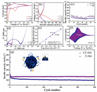 The b value can be gotten from the slope of log(i)-log(v) plots. In general, when b approaches 0.5, the electrochemical reaction is dominantly controlled by ionic diffusion. While b is close to 1, the capacitance behavior is major in the electrochemical process [35]. Fig. 4e describes the log(i)-log(v) plots of CT-500. The b values of cathodic peak at 0.6 V and anodic peak at 1.0 V are 0.88 and 1.0, respectively, meaning that the intercalation process is mainly determined by capacitance. The capacitive contribution at a certain scanning rate can be quantified by differentiating them from total charge storage, including capacitance and diffusioncontrolled charge. Under a certain scanning voltage, the contribution from the combination of two mentioned contributions can be determined following the Eq. (3) [34]: