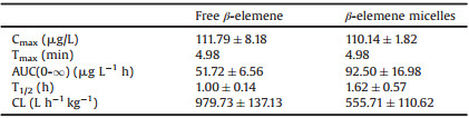 Table 1 Pharmacokinetic parameters of intravenous free β-elemene and β-elemene micelles at a dose of 50 mg/kg (β-elemene). |