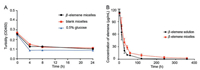 | Fig. 2. (A) In vitro serum stability of prepared micelles in fetal bovine serum. (B) Plasma concentration-time profiles of β-elemene after i.v. administration of free β-elemene or β-elemene micelles. | |