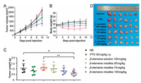 Anticancer drugs derived from natural products have been universally used in the clinic in recent decades [1, 2]. β-Elemene is a volatile oil extracted from the traditional Chinese medicine, Curcuma wenyujin [3]. By curbing proliferation of cancer cells, potentiating immune system, retarding cell cycle, inducing apoptosis of cancer cells, anti-metastasis and anti-angiogenesis, β-elemene can produce certain anti-neoplastic effect [4-10]. β-Elemene solution and emulsion have been widely applied in the medicinal treatment of multifarious tumors over 20 years, including cancer of the lung, breast, liver, brain, ovary, prostate and colon [11-13]. Nevertheless, the poor solubility, low bioavailability and various adverse reactions (eg., phlebitis, fever, pain, drug extravasation resulting in necrosis and local inflammation) limited the clinical application of β-elemene solution and emulsion [14-16]. Hence it is pivotal to improve its safety as well as bioavailability.