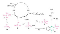 Based on the mechanistic study as well as previous reports [13, 15], the possible pathway for the visible-light initiated cyclization of isocyanides was proposed as shown in Scheme 5. Mechanistically, diarylphosphine oxide 2a exists in equilibrium with its trivalent tautomer phosphinous acid A [6c, 6i, 15]. Firstly, a radical cation intermediate B is generated from corresponding electron-rich phosphinous acid A via a reductive quenching of the RB radical cation (RB ·+) [6c], which comes from the reaction of excited state (RB*) and oxygen from air. Then, the deprotonation occurred with the affording of phosphinoyl radical C [6i], which subsequently adds to the isocyanide functionality in 1a to form intermediate radical D [7a, 8g]. Meanwhile, the phosphinoyl radical could transfer to byproduct Ph2P(O)OH with an oxidation by O2. Finnaly, The product 3a was obtained by the addition of intermediate D to a sulfur atom in 1a along with the release of a methyl group.