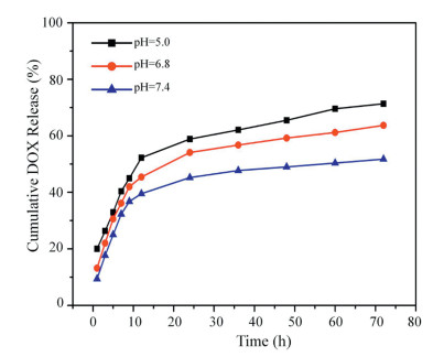 | Fig. 4. Drug release of PG/PLL-b-PPhe/DOX at different pH. | |