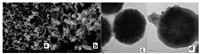 | Fig. 1. SEM (a, b) and TEM (c, d) images of Fe3O4@PDA and Fe3O4@PDA@Zr-SO3H microspheres. Scale bars: (a, b) 3 μm; (c, d) 100 nm. | |