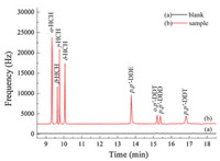 | Fig. 2. The GC chromatogram of river water sample before spiking (a) and after spiking (b) using the proposed method. | |
