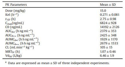 Table 2 The plasma pharmacokinetic parameters determined after intravenous administration of S2 at a dose of 15 mg/kg to rats.a |