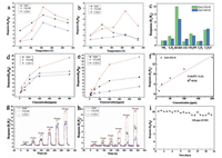 The as-prepared material was mixed with deionized water at a weight ratio of 4:1 and ground in a mortal to form a paste. Then the paste was coated on an Al2O3 ceramic tube with a couple of parallel Au electrode sprinted to form a sensing film (the thickness was about 300 μm). A Ni-Cr heating wire was inserted into the ceramic tube as a heater to control the operating temperature [26]. For a typical gas sensing test, gas sensing properties were measured by a chemical gas sensor-8 (CGS-8) intelligent gas sensing analysis system (Beijing Elite Tech Co., Ltd., China) under room condition (25 ℃, 36% RH). Before testing, the sensors were aged in the air at 160 ℃ for 24 h to achieve stabilization of device. The response value (S) was defined as S = Ra/Rg, where Ra and Rg presented the resistance of sensor in the air and in the target gas, respectively. Response time and recovery time were defined as the time needed for 90% of total resistance change on exposure to the target gas and air, respectively [27].