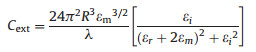 In other words, when the value outside the square brackets on the right side of the formula is a constant value, the value of the denominator of the formula in square brackets tends to zero, and Cext is oriented to infinity. The condition of plasmonic resonance is that when the extinction cross section is infinite, the optical absorption and scattering at this particular frequency is very powerful.