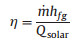 Its energy conversion efficiency (η) is defined as: