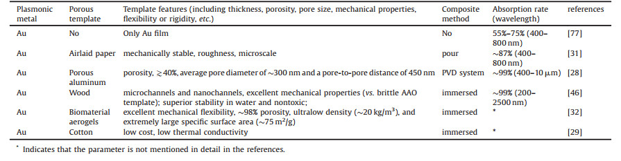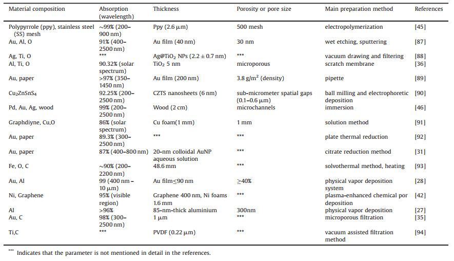 Table 2 The summary of interfacial metal-based solar absorbers with non-selective surface. |