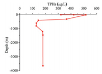 | Fig. 3. Vertical distribution of TPHs concentrations in the northeastern South China Sea. | |