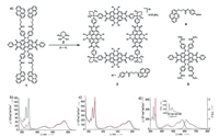 | Fig. 1. (a) The preparation of metallacycle 3 and the fluorescent model compounds 4 and 5; UV–vis absorption spectra in CH2Cl2 for (b) the tetrapyrene–perylene ligand 1 (black line), pyrene 4 (blue line) and perylene 5 (red line) and (c) the self-assembled metallacycle 3 (black line). In addition in (c) the calculated spectrum ε = 4 × ε(5) + 16 × ε(4) is shown (red line). (d) UV-vis absorption (red line), fluorescence excitation (blue line, λem = 630 nm) and emission (black line, λex = 344 nm) spectra for metallacycle 3 in CH2Cl2. The inset shows a magnification of the residual pyrene emission. Reproduced with permission [82]. Copyright 2003, the Royal Society of Chemistry. | |