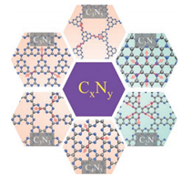 5. Summary and perspectivesThe CxNy materials are easy to synthesize from various precursors, and their final structures depend on the choice of monomers. Specifically, the changes of bridging groups and repeating units in the three-bond-extending structures greatly enrich the varieties of topology. Moreover, the phenyl rings in six-bond-extending structures that is bridged by N atoms leads to a 2D conjugate plane, in which, the quantity and the linkage modes of N atoms determine the extension manner of the phenyl ring. The prosperous topological structures determine the electronic band structures, realizing the wide coverage of CxNy materials in the bandgap range of ca. 0.4-3 eV. As such, the CxNy materials own extremely wide application scenarios ranging from photocatalysis, electrocatalysis to battery electrodes and from biosensing to other new fields.