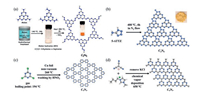 | Fig. 5. Synthesis pathway and molecular structures of disordered C2N. (a) The liquid-crystalline eutectic intermediate observed by optical microscopy in the supercooled liquids, partial polarization mode (inset: macroscopic photograph). (b) Synthesis pathway of disordered C2N (bottom) from HKH and urea via a liquid-crystalline eutectic intermediate (top) obtained by pre-reaction. Copied with permission [29]. Copyright 2015, Wiley-VCH. | |