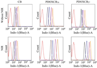 | Fig. 4. Flow cytometry histograms of the MCF-7 cells incubated with PDOXCBs (10 mg/mL CB equiv.) or free CB (10 mg/mL) with/without the NIR irradiation at different times (red, control; black, 0.5 h; blue, 1 h; pink, 2 h; orange, 4 h). | |