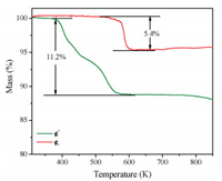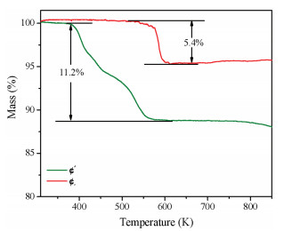Fig. 3 shows the thermogravimetric analysis curve of I and Π. The result of the test indicated that I and Π gradually lost weight starting from about 377 K and 473 K, the weight losses of 11.2% for I and 5.4% for Π, respectively. Obviously, more crystal water in I is the reason for the obvious difference in weight loss between the two compounds. After heating to 873 K in the programmable furnace, the residues of I and Π were K2Mn2(SO4)3 and Rb2Mn2(SO4)3, respectively. They were confirmed by the powder XRD analysis (Fig. S6 in Supporting information). The powder SHG measurements (Fig. 4a) reveal that I and Π exhibit SHG intensities of about 0.2 and 0.25 × KDP respectively. The SHG tests further confirm the NCS structures of the titled compounds. Based on the anionic group theory, the traditional studies on NLO materials mainly focus on the π-conjugated system, such as [BO3]3-, [CO3]3- and [NO3]3-, which feature triangular planar geometry. In comparison, sulfates are analogous to phosphates, the microscopic second-order nonlinear susceptibility of the SO4 and PO4 units are one order of magnitude smaller than that of the planar B—O groups, BO3 and B3O6. As such, the SHG coefficients of sulfates and phosphates are relatively small [36]. Theoretical calculations on the relationships between the crystal structures and SHG responses will be carried out in the future. The UV–vis near-infrared diffuse reflectance spectrum of I and Π are shown in Fig. 4b. The powders measurements indicate that I and Π display the optical band gap of 5.54 eV and 5.55 eV, respectively. It suggesting that I and Π are broad-band gap materials. (Fig. 4b).