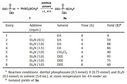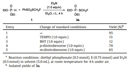 Table 3 Control experiments of reagent 1 with diethyl phosphonate.a |