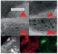 | Fig. 1. High resolution TEM (HRTEM) images of Ru/AC (A), RuPt0.3/AC (B), RuPt0.6/AC (C), RuPt1.2/AC (D) catalysts and EDS mapping image of the RuPt0.6/AC catalyst (F). | |