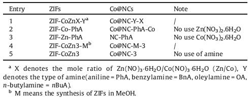 Table 1 The naming rules and correspondence of ZIFs and Co@NCs. |