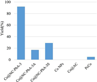 | Fig. 7. Comparison of catalytic performance over different catalysts for the oxidative esterification of HMF. Co@NC-PhA-3A means Co@NC-PhA-3 leaching with acid; Co@NC-PhA-3S means the use of Co@NC-PhA-3 with NaSCN (10 mol%); Co@AC meansactive carbon supported Co nanoparticles; PcCo means cobalt phthalocyanine; Co NPs means naked Co nanoparticles. | |