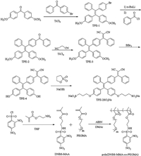 | Scheme 1. Synthetic routes of TPE-2SO3Na and poly(DNBS-MMA-co-PEGMA). | |