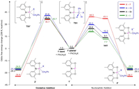 | Fig. 6. EDA on the transition states of C-Br activation by 1′. The energies are given in kcal/mol. | |