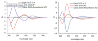 | Fig. 3. Theoretical (red lines, blue lines for their enantiomer's) and experimental (black lines) ECD spectra of compounds 1 and 2. | |