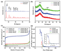 | Fig. 3. XRD patterns of (a) NPMOF and (b) MOF-derived porous carbons. (c) Nitrogen sorption isotherms and (d) pore size distributions of NPMOF, NPMOF-700, NPMOF-800 and NPMOF-900. | |